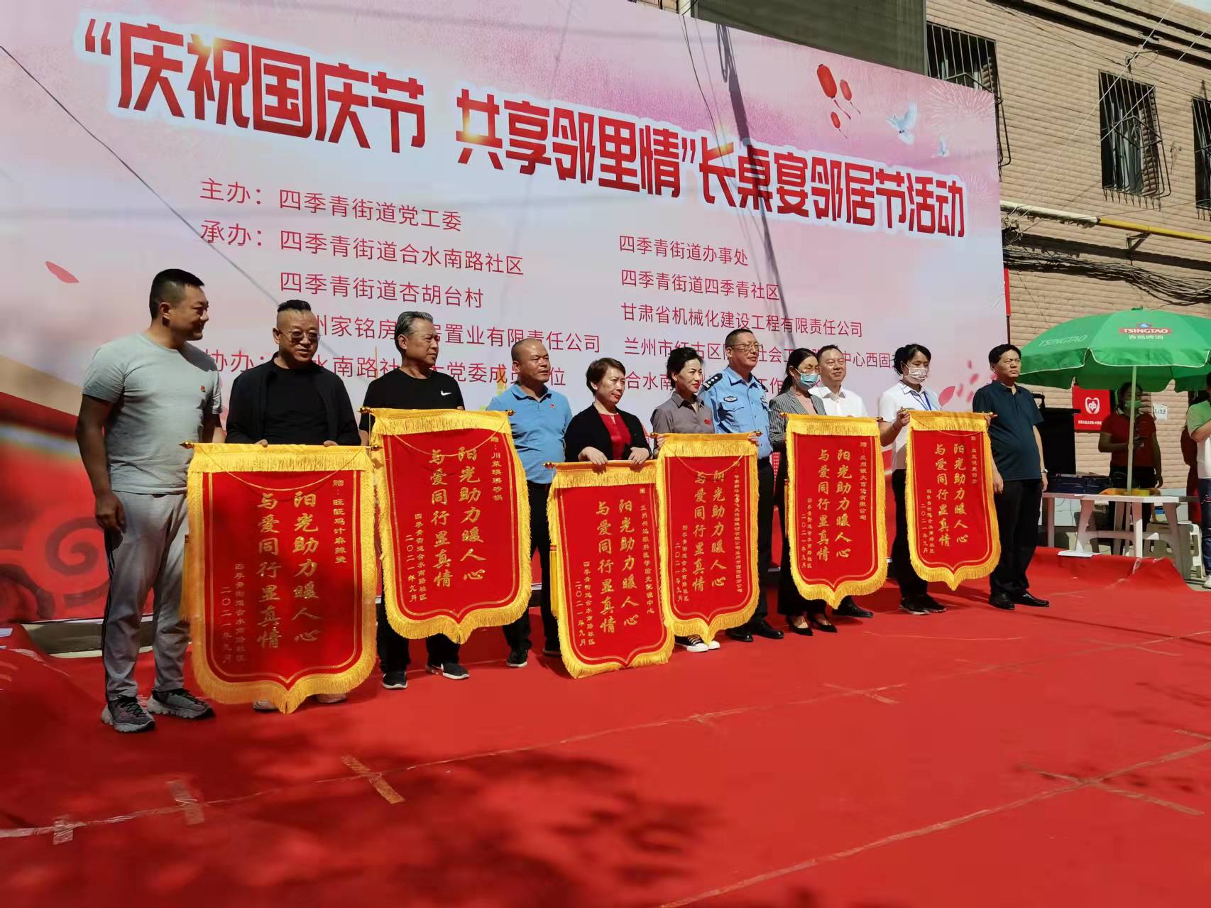 為弘揚鄰里互助的傳統(tǒng)美德,構(gòu)建“鄰里關(guān)愛、團結(jié)互助、共創(chuàng)和諧”的新型鄰里關(guān)系,營造轄區(qū)居民積極參與社區(qū)文明創(chuàng)建的良好氛圍,喜迎“國慶”。近日,由四季青街道黨工委主辦“慶祝國慶節(jié)共享鄰里情” 長桌宴鄰居節(jié)活動在機械化家屬院隆重舉行。我司黨委書記、四季青街道等共計200余人參加了此次活動。