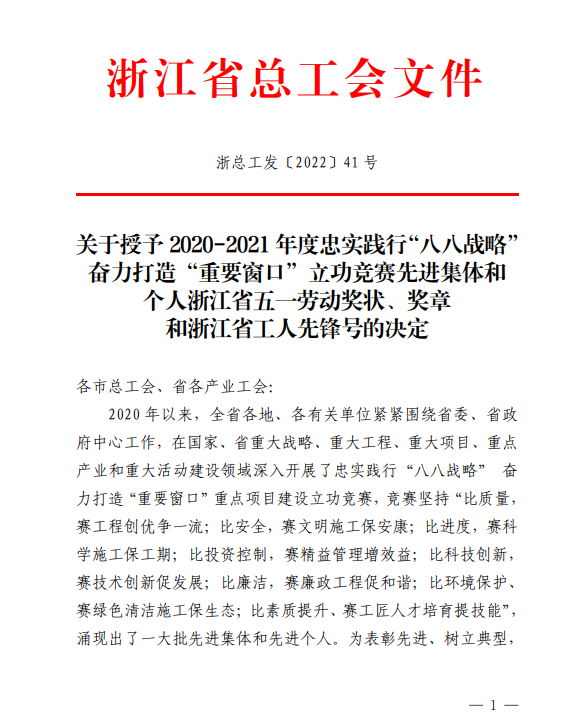 4月27日,我司新建浙江麗水機(jī)場(第一批)02 標(biāo)段項(xiàng)目部榮獲“浙江省工人先鋒號(hào)”稱號(hào)。
