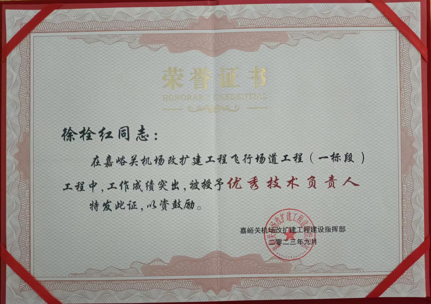 近日,嘉峪關(guān)機(jī)場改擴(kuò)建工程建設(shè)指揮部對在嘉峪關(guān)酒泉機(jī)場改擴(kuò)建工程中作出重要貢獻(xiàn)的參建單位給予通報(bào)表彰,公司榮獲“嘉峪關(guān)機(jī)場改擴(kuò)建工程飛行場道工程 (一標(biāo)段)優(yōu)秀組織管理單位”稱號,徐栓紅同志被授予“優(yōu)秀技術(shù)負(fù)責(zé)人榮譽(yù)稱號”。?