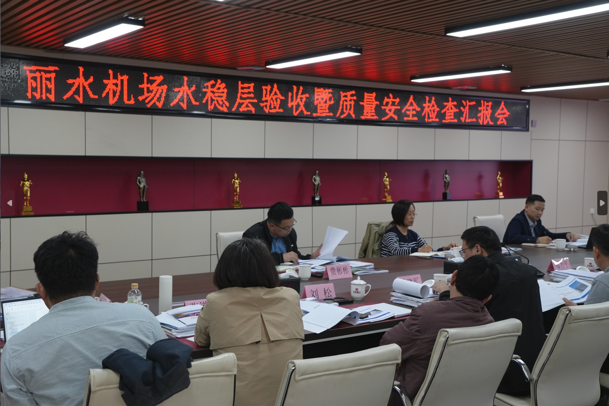 4月23日,檢查組聽取了我司麗水機場項目部工作匯報,詳細了解了項目進展情況和本次道面基層分部驗收、道面面層試驗段施工情況。